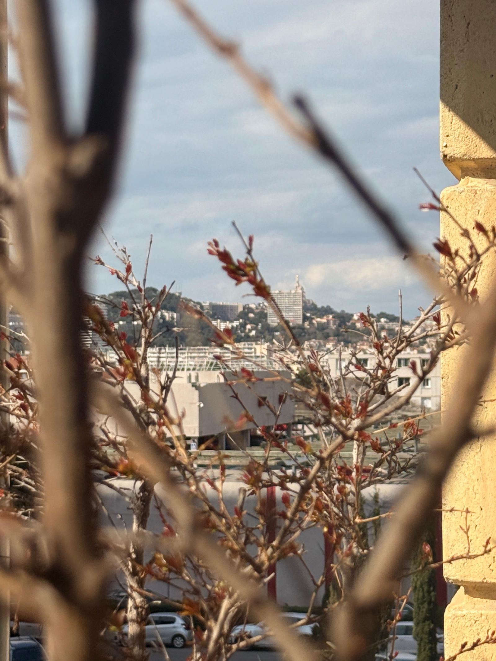 Bel appartement Calme, lumineux et spacieux au 3ème étage sur 4 dans une résidence très prisée du quartier jouissant d'un magnifique parc arboré et entretenu, éloignant des nuisances sonores du boulevard. Aperçu Bonne Mère depuis le côté cuisine sur la terrasse